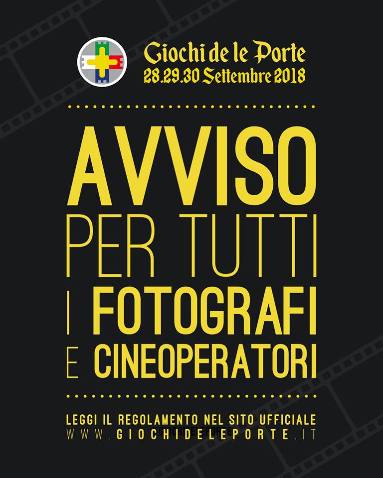 Il “ Regolamento ” per l’accesso dei fotografi e dei cineoperatori al Palio di San Michele Arcangelo che si terrà nei giorni 28, 29 e 30 settembre 2018 detta le regole che disciplinano l’accesso dei fotografi professionisti, fotoamatori evoluti e video-operatori nei luoghi nei quali si svolgono le manifestazioni ufficiali, ovvero i giorni di Venerdì, Sabato e Domenica.