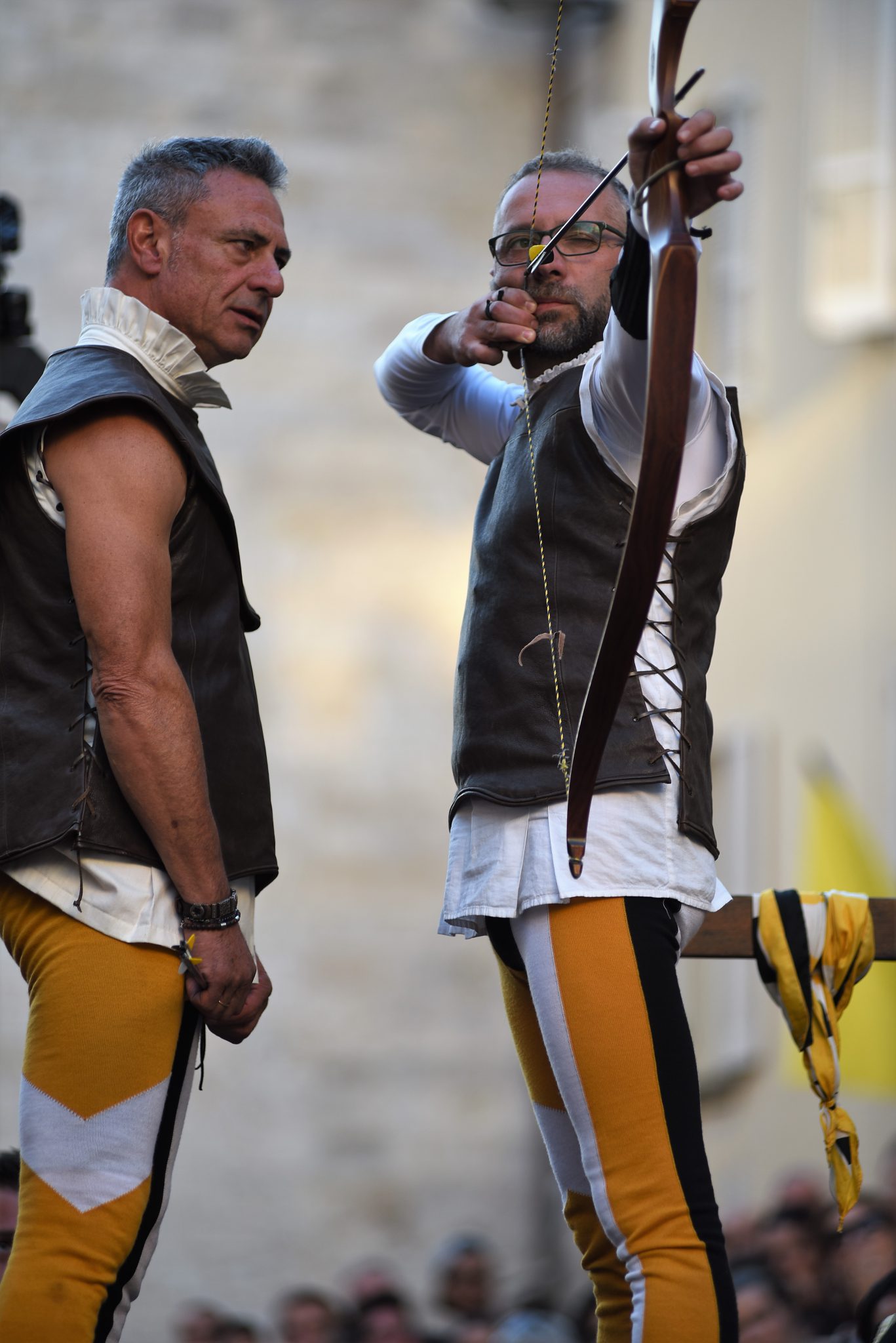 E’ la prova con l’arco a scuotere la classifica: San Benedetto con Daniele Astolfi piazza un 41, San Donato con Marco Nati 42, San Martino con Marco Marcantoni 31, San Facondino con Luca Castagnoli 16.