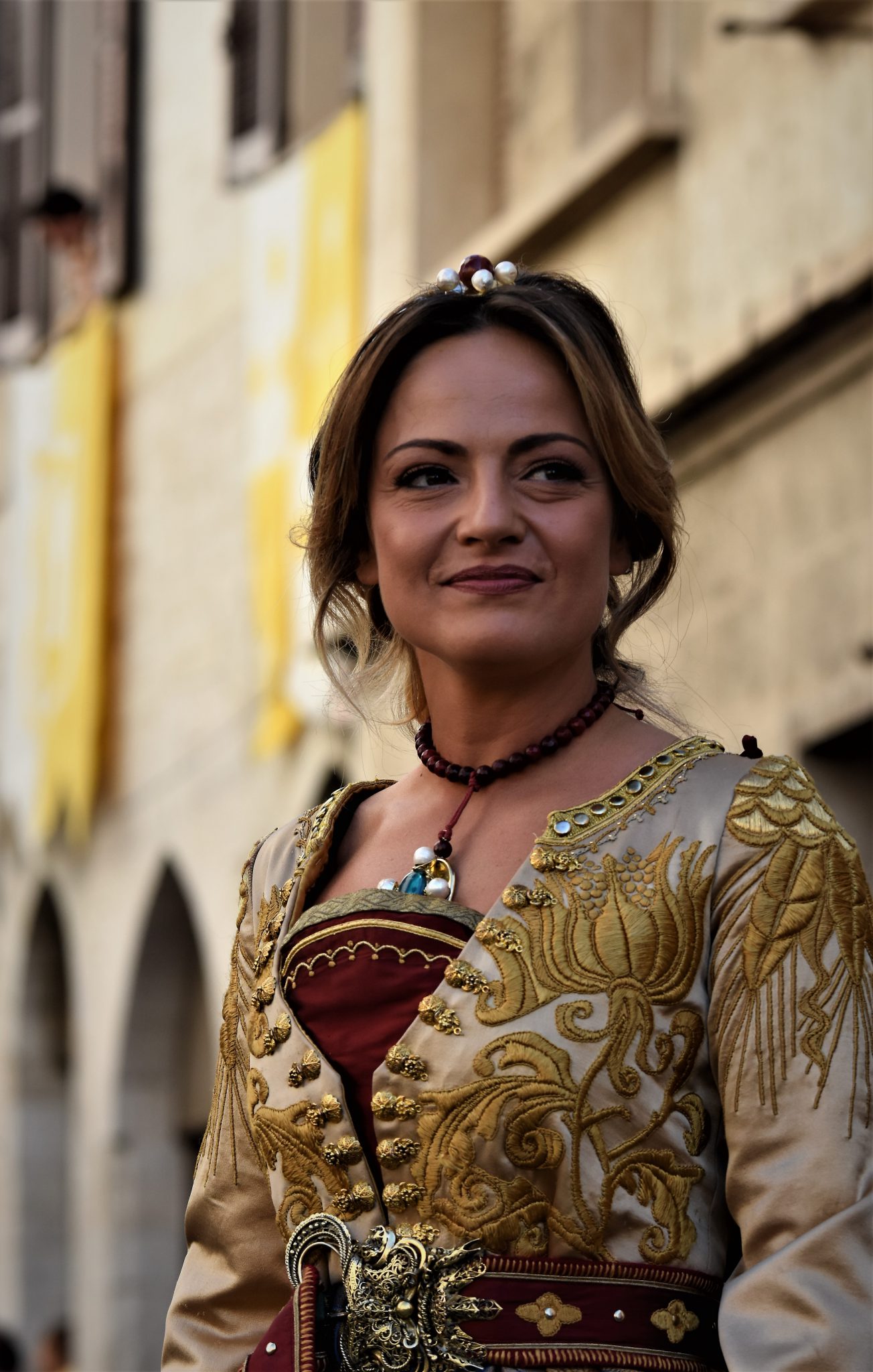 Corteo storico aperto, grazie al main sponsor Rocchetta, da Miss Italia 2018 Carlotta Maggiorana vestita con un abito realizzato da Daniele Gelsi.